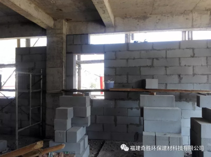 一、框架搭建好后,外墻直接用巖安牌高精加砌磚砌筑(厚度20cm)